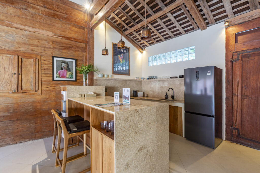 Di bagian dalam, ruang tamu terbuka menampilkan dekorasi tradisional Bali dan karya seni lokal, yang menambahkan sentuhan budaya dan kehangatan pada masa inap Anda. Dapur yang ringkas namun lengkap menyediakan semua yang Anda butuhkan untuk menyiapkan makanan, dan untuk sentuhan kemewahan, koki pribadi tersedia berdasarkan permintaan.