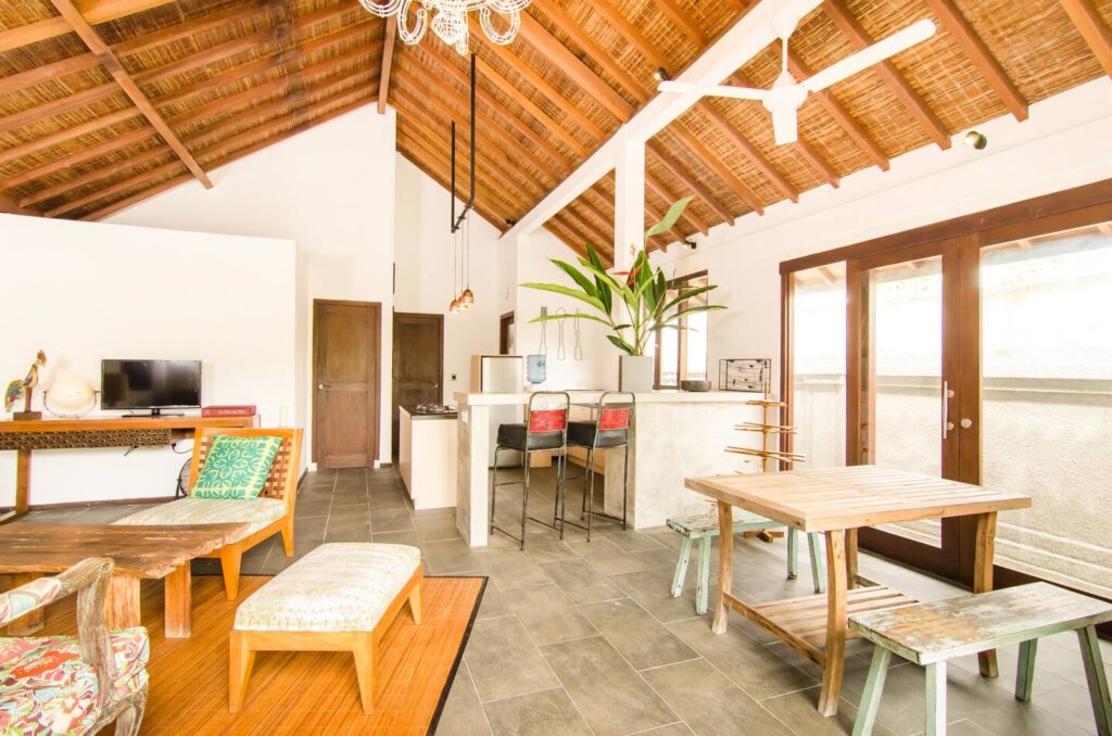 室内开放式起居区采用传统巴厘岛装饰和当地手工制作的艺术品,为您的住宿增添一丝文化气息和温暖感。紧凑而设备齐全的厨房提供您烹饪饭菜所需的一切,如需奢华享受,可应要求提供私人厨师。